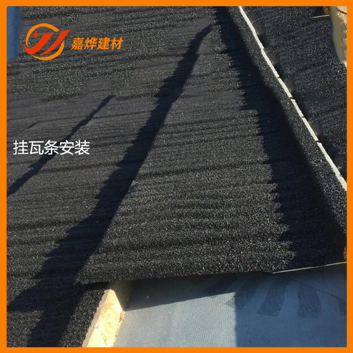 板條安裝“即屋頂材料是連接在2x2木板條(鍍鋅管)網(wǎng)格頂部。用順水條和掛瓦條作為作為瓦片的固定物,是當前國內(nèi)金屬瓦主流的安裝方式。