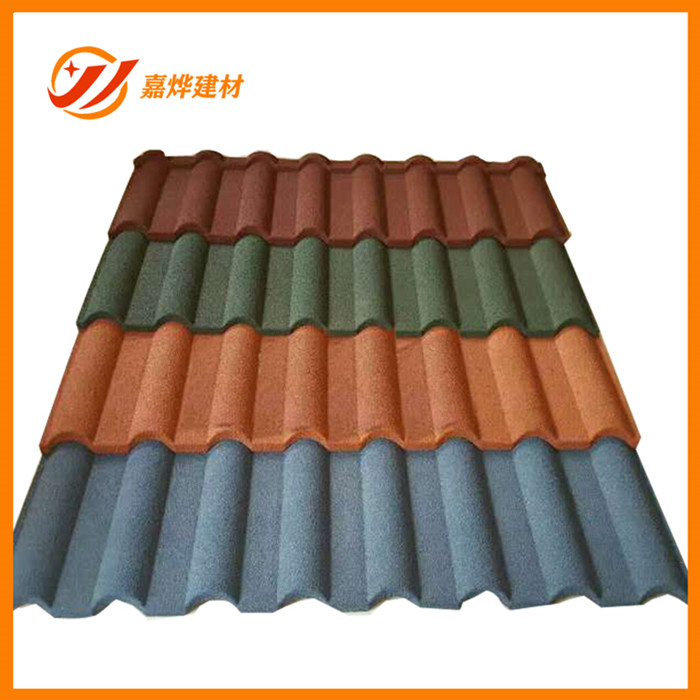 彩石金屬瓦,是采用新技術(shù)生產(chǎn)的,以防腐性能優(yōu)異的鍍鋁鋅鋼板為基板,以耐候性極強(qiáng)的丙烯酸樹脂為黏合劑,以彩色天然沙礫為面層的新型屋面材料。因其美觀、輕巧、耐用、環(huán)保,近年來已經(jīng)成為國際屋面材料的主流產(chǎn)品,國內(nèi)建筑使用。